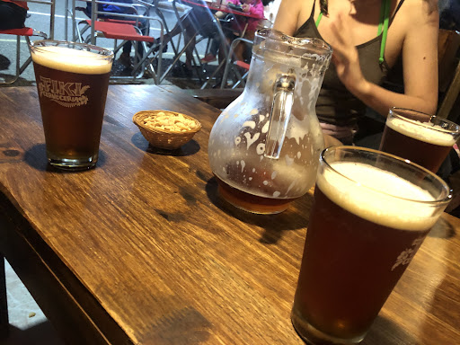 Read moreUn lugar muy simple, adentro le falta lugar, estuvimos arriba y muy pocas mesas, justo era un día de lluvia, el piso todo inundado, se entiende que hubo lluvia todo el día, pero se podría haber sacado un poco de agua. Tiene 3 tipo de variedad de cerveza, me parece poca oferta ya que se ofrece como una Cervecería, así y todo, buena cerveza. La comida, lo que son las papas fritas muy buenas, solas y las completas, al igual que los aros de cebolla están buenos. Las hamburguesas y sándwichs son abundantes, solo que una las hamburguesas la carne vino con muchos bordes quemados.