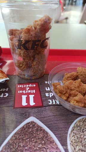 Read moreBueno , fui el domingo 30 / 6 para empezar la bebida estaba fría .. la chica que me atendió , para mí no supo explicarme bien el menú , está bien estaba explotado ese día .. pero pedí un balde con piezas combinada .. uno hace fama que KFC es lo mejor de lo mejor .. NO ME MATO , el pollo estaba seco las alitas la pata picante también . Uno paga más de 800 pesos por eso y la verdad las papas fritas frías .. la bebida sin hielo .. el pollo no tenía tanto sabor como imaginé ... Y pedí con salsas y solo me dió dos con barbacoa para un balde de 8 piezas ! ... Una cargada .. para el olvido por ese precio como en un local de comida rápida muchísimo mejor .. ojalá mejoren .. me quedé con las ganas de un buen pollo frito...