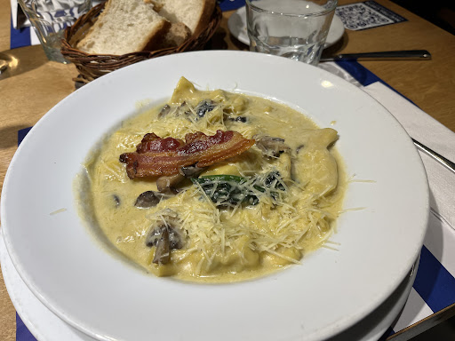 Para el plato principal, elegimos la milanesa de ojo de bife con papas a la crema ( la porción es para compartir ). La carne estaba tierna y jugosa, con un empanado crujiente que le daba un toque extra de sabor. Las papas a la crema eran suaves y cremosas, el acompañamiento perfecto para la milanesa. Tambien pedimos los Molinellis de Osobuco que estaban muy buenos , con mucho relleno y una salsa pomodoro exquisita .
