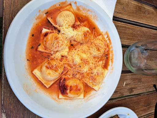 Atención 6/10 Entrada 4/10 Principal 9/10 (destaco los sorrentinos) Postre...