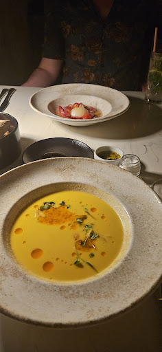 Ok so for food - we had 3 gazpacho dishes on our trip and this was our favorite over 2 other Michelin star restaurants. It is fabulous. Pumpkin risotto is solid. Chicken was a bit dry but sauces good. Good presentation on all dishes and good cocktails!