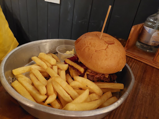 Read moreNos gustó conocer Mi Barrio! El ambientes es moderno y cálido, pero algo intranquilo y ruidoso. Se puede comer dentro del lugar en un espacio reducido y sino afuera al aire libre donde se encuentran la mayoría de las mesas. No hay servicio de mesa, por lo tanto, cada persona debe ir a la caja y pedir lo que quiere para que luego se lo alcancen a su mesa. Es importante tener paciencia luego de realizar el pedido porque muchas veces hay demora debido a la gran concurrencia, sobre todo los fin de semana en horarios pico (21 a 23 hs). Para comer no hay mucha variedad, pero sí varias opciones. Se puede comer hamburguesa (14 tipos) o sino ensalada (2 tipos) y también se pueden pedir unas papas o aros de cebolla como snack. Para beber hay pocas opciones, ofrecen cervezas de marca (Stella Artois, Patagonia, etc) y artesanal, gaseosas y aguas saborizadas. Nosotros pedimos las hamburguesa Caseros y la Palermo Hollywood y las 2 estaban bien presentadas, grandes y ricas. Nos pareció que los precios podrían ser un poco más bajos debido a que en otros lugares de la zona se pueden comer hamburguesas muy buenas por precios menores. También pedimos unas pintas de Patagonia y Stella Artois que estaban bien frescas. Hay estacionamiento gratuito y seguro pegado al lugar y sino en colectora....