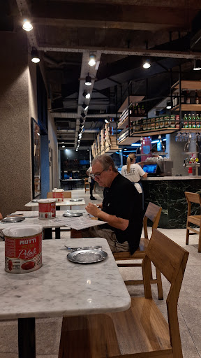 Read moreFui con muchas expectativas a degustar las pizzas de Donato a quien admiro, a su local PP de Pilar, pero la desilusión fue enorme cuando pedí dos pizzas para llevar una Margarita tradicional: pomodoro, mozzarella, albahaca y aceite de oliva, estos 2 últimos ingredientes no vinieron en la pizza, su aspecto era seco y la mozzarella de dudoso aspecto, es decir parecía queso) y la otra Ortolana: pomodoro vegetales de la huerta con un leve sabor ahumado bastante sabrosos, hongos, mozzarella y aceite de oliva extra virgen que como en la primera tampoco estaba presente, dando también un aspecto seco a la pizza. Sin embargo creo que la calificación más baja de mi parte es para la masa, que resultó ser demasiado gomosa, difícil de cortar y más aún, difícil de comer, si bien estaba cocida tal vez por el alto porcentaje de humedad parecía cruda, un fiasco. Esperaba otro tipo de producto terminado en relación precio- calidad. No creo que vuelva, tampoco...