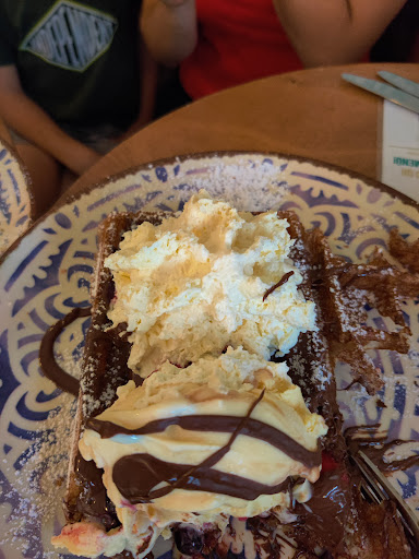The best waffles and brownie that I have ever tried. It's a small, unassuming place at the República de los Niños. We went on a weekday and they didn't open until later in the afternoon and didn't have their full menu available. They were understaffed, but fortunately we didn't have to wait too long. We went to one of the restaurants on the same street, it was an absolute waste of time and money. Don't make that same mistake, wait for this place to open as long as necessary. Pay to upgrade the waffles, it's worth it. The drinks, smoothies, juice, coffee were all top notch. I would consider making the trip here from capital, it is that good. If you have kids it's a...