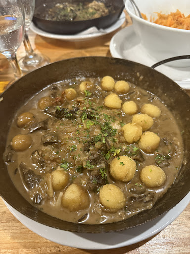 La comida es espectacular! Ya van 3 platos que pruebo, las cintas con mariscos, los ravioles de osobuco con salsa de hongos y el bife a la pimienta con papas a la crema, todo supera la expectativa. La atención es excelente y los precios son muy buenos también teniendo en cuenta que los platos son abundantes. Más abajo leí una reseña que decía que la salsa de hongos tiene muchos hongos, no le den bola porque la salsa está espectacular y tiene la cantidad justa porque si no no se le sentiría el sabor que uno la pide justamente por eso. Nada que agregar ni que sacar porque la verdad este bodegón es un acierto y...