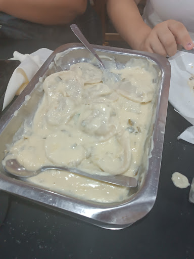 En cuanto a la comida, pedimos unos agnolotis con salsa blanca de verdeo, y fue un gran acierto. Optamos por la porción para dos personas, la compartimos y ambos quedamos completamente satisfechos. La salsa tenía un sabor delicioso y complementaba perfectamente la pasta. ¡Recomendadísimo!
