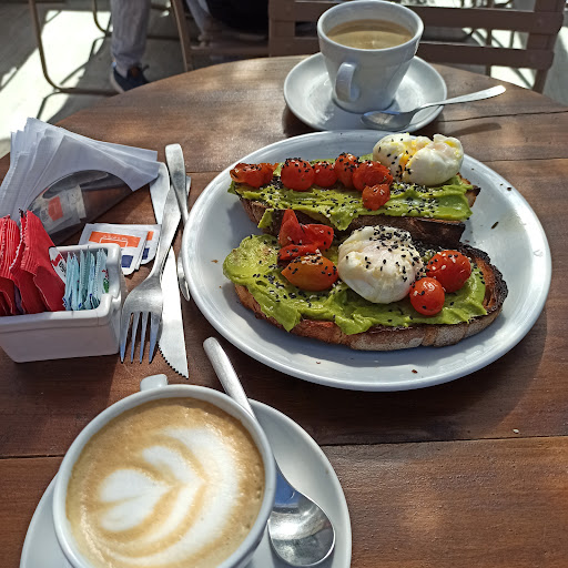 Odio las reseñas largas PERO este lo ameritó bastante. Experiencia un poco desagradable. El día que fui (hace una semana) luego me dió una descompostura de estómago que me duró varios días. Fuimos al mediodía, el lugar se encontraba vacío (sol directo) y tenían sólo dos sombrillas que no cubrían casi ninguna mesa. Nos llamó la atención la desidia de parte de quienes trabajan allí que a cada persona que consultaba si había manera de hacer sombra para comer le respondían con un simple 'no, no podemos..'. Luego pasamos por la tarde y el lugar se encontraba repleto de sombrillas. Otro punto a destacar para mal fue la poca atención que recibimos de parte del mozo que pareciera que le molestamos en su horario de almuerzo cuando el lugar se encontraba vacío. Su atención muy dudosa. En cuanto a la comida, precios elevados y poca consistencia en todo sentido. Pedí la ciabatta con miso, hummus, etc que estaba SUPER salada y con un aspecto extraño en su interior. Traducido: hecho con muy pocas ganas. No te pido que me trates como una duquesa ni nada cercano a eso, entiendo que es un lugar en la costa y no va a ser lo mejor. Pero fue una muy mala experiencia. Éramos 4 y ningunx terminó su plato. Recomiendo sólo la parte de panadería, los cuales probé primero que su comida y son superiores. Para comida, caminen una cuadra más y vayan a Las Cortaderas. Mil...