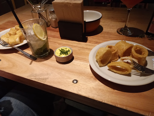 Read moreLa comida muy rica. Pero una experiencia muy mala me llevo. Bajo esas condiciones no volvería nunca más. Tardaron 1 hora y media en traer la comida. Se entiende que con el covid y todo puedan estar cortos de personal, pero la responsabilidad es con el cliente, le avisas y que él decida si se sienta a comer o se va. Hay muchas cosas que se pueden hacer, como llevarles algún trago gratis o algo para que piquen, algo que reduzca la molestia de la espera. La música en el interior está muy fuerte y hay mucho eco por lo que no se escucha hablar a la gente con la compartís mesa. Le pedí al flaquito de rulitos de la caja si podía bajar el volumen un poco para poder escuchar a mis compañeros, solo hizo una cara de “que molesto” y no hizo nada, una amiga fue a pedir lo mismo, y la misma respuesta fue recibida. Que el dueño sepa que el descuento que tuvieron q hacernos fue culpa de ese niño maleducado y su amiguito de la barra, porque la espera se podría llegar a aguantar, pero la falta de respeto de parte de los empleado, que generan un clima incomodo y molesto...