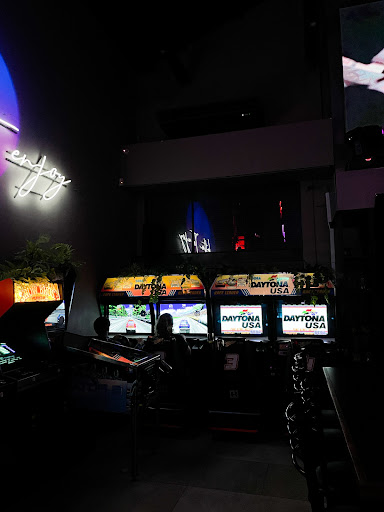 Read moreUn "bar gamer", para no gamers. ¿Por dónde comienzo?. Bueno, fui vestido tranqui, tenía mi remera de Boca puesta abajo de mi camisa, entramos, me saqué la camisa y vino personal de seguridad a decirme que me tape porque no se pueden usar remeras ni de Boca ni de River(? Me quedé con ganas de preguntar si con la remera de Aldosivi no había problema. En el sitio ni en ningún lado se aclara el código de vestimenta, que la verdad no me esperaría algo así para un lugar auto-denominado "bar", así que ya de entrada no me sentí cómodo, aunque debería de haberlo previsto, ya que si no vas vestido como Millie Bobby Brown o Finn Wolfhard, parece que no sos bienvenido/a, o directamente te miran mal 👎. El lugar es excelente, y la música también, pensé que la opción de arcade's iba a ser más amplia. Las birras son casi mitad en lata y algunas opciones tiradas, pedimos un "Pink Tonic" y era puro hielo, los precios de la birra están dentro de todo "bien", pero los tragos bastante más caros de lo habitual, y si le sumas que los llenan de hielo, entonces directamente no se los recomiendo a nadie, la comida también bastante cara. La atención deja mucho que desear, llevaron nuestros pedidos a otra mesa y quedaron ahí hasta que se les ocurrió traerlos a nuestra mesa, lo puedo entender si hubiese habido mucha gente, pero en ese momento no estaban ni la mitad de las mesas ocupadas, fui mozo varios años y creo que entiendo de lo que hablo. En fin, un lugar que aparenta ser para un público nostálgico y amante de los arcade's, pero que en realidad está pensado para personas con más de 20k seguidores en Instagram, que van a sacarse fotos jugando al Pac-Man y aparentar que la pasan bien, pero que ni siquiera tocaron un solo botón del arcade 🤷. ¿Sos un amante de los juegos retro que tanto amaste, que jugaste en tu infancia y querés ir simplemente a pasarla bien? No te lo recomiendo, vayan a un Sacoa. ¿Querés ir a sacarte fotos jugando al Daytona y ganar muchos likes? Metele...
