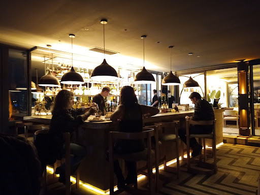 Read moreUn lugar prefecto para pasar un momento único, con una vista increíble, ambientación, comida y atención Desde nuestra llegada a la recepción del edificio hasta salir nos hemos sentido muy a gusto y cómodos La recepcionista nos indicó muy amablemente como llegar al piso 9, la moza nos presentó las distintas posibilidades que teníamos aparte de la mesa que reservamos, también nos aconsejó sobre los tragos y la cena, incluso el barman se presentó para explicar su trago de autor, y en varios momentos nos sacaron los platos ya terminados, al retirarnos, el chef junto con sus ayudantes nos saludaron, lo cual quedamos gratamente impresionados por todo el trato recibido en los diferentes momentos toda la noche Elegimos la barra que esta sobre los vidrios de la terraza (en esta época del año techada) y aunque podíamos en cualquier momento volver a la mesa que ya habíamos reservado nos sentimos muy a gusto allí Pese a ser una barra, no es un lugar incómodo para comer, las sillas altas son muy cómodas y confortables, las velas crean un ambiente romántico y la vista es soñada, nos tocó una noche de luna llena, de fondo la torre de agua y sobre la calle Olavarría un carte luminoso llamativo La comida es exquisita, pedimos "Lomo Bourguignon" para compartir, este plato contiene hongos, papas, panceta y una salsa agridulce, todo acompañado por panes caseros de diferentes tipos, y que fue, un excelente acompañamiento para la salsa De postre, pedimos una "Tarta de Limon" (Lemon Pie) y "Sueño de Dulce de Leche" (Flan de Dulce de Leche) ambos con una bocha ovalada de helado (de Chocolate para la Tarta y de Americana para el Flan) Quizá el único punto discutible es que tienen pocas elecciones de platos, todos son para compartir y no tienen variedad mas alla de la carne, como ser pastas o pescados (unicamente trabajan con la pesca del dia que es un filet con agua bendita, sin salsa ni guarnición), este punto, fue el más discutible para tomar la calificacion final El lugar que elegimos para quedarnos a comer por propia elección y con posibilidad de cambio (la barra sobre las ventanas) tenía poca luz, por lo cual no se podia apreciar los detalles de los tragos o elaboración de los platos de comida o postre, por otro lado, generaba un ambiente tranquilo y romántico Los precios sabíamos de antemano que serían elevados, pero es acorde al lugar, atención, gastronomía y tragos ofrecidos, sin embargo, nos pareció caro Para comer se debe reservar previamente por la aplicacion Woki, si solo se quiere ir a tomar algo no es necesario, pero únicamente estará disponible el sector de barras En nuestro caso en particular, fuimos un miércoles, el cual la demanda de clientes era baja y teníamos libertad para quedarnos el tiempo que quisiéramos e incluso cambiar de lugar, pero tengo entendido que se manejan por turnos de dos horas, algo que, si uno quiere estar distendido y relajado no sería este el caso La realidad fue que no le encontramos ningún punto negativo y la pasamos más que bien Super recomendable para...