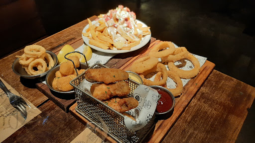 Read moreCalifico mi experiencia! Ayer, viernes por la noche fuimos a tomar una cerveza con mi pareja, para comer pedimos una porción de rabas y unas papas rústicas Pulled Pork. Las rabas, para ser una porción, eran muyyyy pocas, relación cantidad-precio: muy mala, caras!!! Las papas eran unos gajos enormes con muyyyy poca "salsa" por arriba pero zafaba aunque por la cantidad de salsa que le pusieron y teniendo en cuenta de que eran papás, fue caro también. Estaba casi vacío el local y tardaron mucho tiempo en traernos la comida, ambas cosas fritas, no demora mucho la cocción. El ambiente, helado, hacía mucho frío afuera pero adentro hacia más, ni mi pareja ni yo nos sacamos las camperas. Lo mejor fue el servicio, divina la chica que nos...