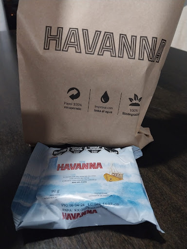 Read moreCompré 6 alfajores surtidos, gasté 10 mil pesos, que no parece una suma baja ni poco dinero teniendo en cuenta la situación actual. Pedí una caja para que estén mas presentables los alfajores y seguros en el viaje, sin embargo el empleado se negó "Solo te puedo dar una caja si compras 6 alfajores del mismo tipo, no con surtidos" ni siquiera me ofreció una bolsa decente, me los guardó en una bolsa de papel madera de calidad cuestionable y fea. Los alfajores obviamente no llegaron en condiciones del viaje, aplastados y desarmados (viajé en auto, no me quiero imaginar si hubiese ido en micro) a los 10 minutos paramos en otro Havanna, un amigo hizo la misma compra que yo (6 alfajores surtidos) y le ofrecieron una caja y una bolsa de verdad. Nunca más, la próxima a Balcarce que está en frente. Adjunto foto...