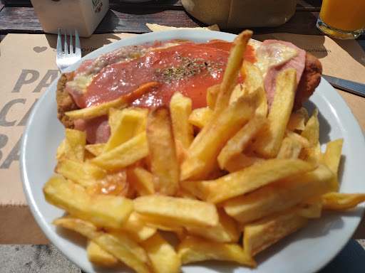 Si bien la especialidad es de panadería y cafetería fuimos a almorzar Fuimos en varias oportunidades, tanto en pareja o con la familia, casi siempre nos sentamos afuera en la vereda mirando a la avenida, con una tarde cálida y soleada, lo que nos agradó mucho La atención en la mesa siempre fue educada y el pedido llego a tiempo La panera está muy bien presentada con varios estilos de panes y una mayonesa con ajo para acompañar Pedimos una milanesa de ternera napolitana con papas fritas y una ensalada cesar con una jarra de jugo de naranja y maracuyá A destacar el jugo que es muy sabroso al igual que la salsa y el queso de la milanesa En otra oportunidad pedimos bife de cerdo con huevo frito y papas españolas (menu del día el cual nos sorprendió gratamente), una ensalada con pollo y una hamburguesa con queso Como puntos negativos, podemos decir que la salsa Cesar de la ensalada no se sintió en sabor y la ensalada con pollo, el mismo estaba recién cocinado, caliente y casi crudo Las papas fritas eran las clásicas baston, no están mal, pero podrían mejorar, las españolas nos gustaron mucho Todos los platos fueron abundantes y bien armados y presentados Los precios son justos, no son elevados, pero tampoco baratos El lugar es agradable y está bien arreglado, aunque la zona no sea la más popular siempre está lleno o con varios clientes Recomendable para pasar una linda tarde con amigos, familia o pareja, afuera si el tiempo...
