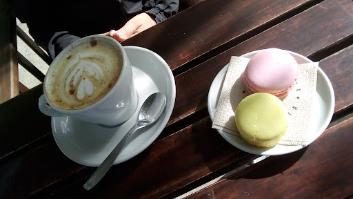 Read moreFui a merendar y elegí sentarme afuera, personalmente me resultan un poco incómodas esas sillas. Nos tomaron el pedido rápido pero no resultó así a la hora de traerlo. Nos trajeron el Cappuccino que estaba muy rico pero había llegado tibio, con el detalle de una galletita. Los dos Macarons estaban muy ricos. Pedí un vaso de 400cc de naranja, maracuyá y hielo Muy rico la verdad 😍 con media porción de Tostadas de pan integral y mermelada. Muy ricas las tostadas, crujientes por fuera y esponjosas por dentro. Algo para decir: la atención no es muy buena, faltaría que la camarera sea más amable; quizá estaba cansada o tenía un mal día. Hubo un error al momento de traerme las tostadas en vez de traerme las tostadas integrales con mermelada, otra camarera (no la que nos tomó el pedido) me trajo Tostadas de pan blanco con queso. Y si se tardaron en traerme las que yo había pedido. Los precios están acordes a la calidad de la comida. El baño estaba impecable, el ambiente es muy agradable. Volvería otra vez pero deberían mejorar la atención y los tiempos de entregar...