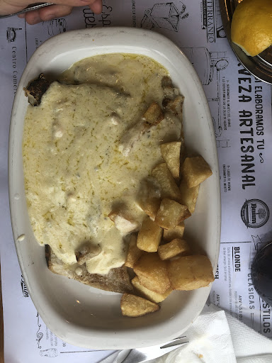 Lugar muy bonito, atención normal, pedi una sugerencia a la moza sobre de los pescados por uno “grasoso” y me recomendo el abadejo, lenguado y otro que no recuerdo. Cre haber pedido un plato ofrecido en la carta que era “lenguado con salsa de roquefort” y al parecer en una confucion mia o de la moza termine comiendo abadejo con esa misma salsa, no solo que en el ticket me quisieron cobrar el abadejo grillado y ademas una salsa de roquefort exageradamente cara, sino que el plato en si era bastante malo. La piel del abadejo estaba pasada al punto de tener sabor a quemado y que sea tal que tape el sabor al mismo pescado, la salsa de “roquefort”, cono se ve en la foto, tiene una cantidad execiva de aceite suelto, el sabor era de bechamel con queso reggianito tipo rallado, que poco tiene que ver con roquefort. A destacar la guarnición de papas que estaba bien echa, la cerveza que estaba bastante bien, y que al final se soluciono el tema de la orden del pescado a la hora de pagar