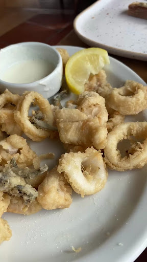 Necesitábamos sal y otra vez 15 minutos o más pasaban mozos y capaz con señales de humo nos habrían hecho algo de caso Me sentí a esta instancia INCÓMODA e INVISIBLE Mi marido se levantó a buscar la bendita sal, sin contar que las rabas ya estaban frías 🫣 Como no queríamos estar mal no era la idea de la salida, no protestamos, nos relajamos y reímos de la situación