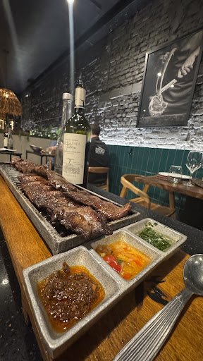 Read moreSoy muy critico de la mayoria de parrillas, pero debo admitir que esta es una excepción. La carne estaba muy bien, muy buenos los buñuelos y destacable el panqueque, ademas de buena carta de vino y precios acordes al espacio, que si bien presenta mesas chicas, no es por ello incomodo. Se esta bien, en buena carta ambiente. Hay humo a veces, pero bueno es una parrilla, mas que quejarse jno se tienta a comer mas, aunque las porciones sean abundantes, pero tene en cuenta eso si vas a una cita, probablemente los dos salgan un toque ahumados. Lo unico negativo vino al final, por que la atencion en si fue buena, pero notamos dos cosas que nos molestaron. La primera es que el total era alrededor de 80 algo (pongo foto) y pagamos con 100. Esperamos y esperamos y no trajeron el vuelto. A su vez quedaban pocas mesas y en todas llevaron una bebida de cortesia en el final de la cena, mientras que a nosotros nos ignoraban y nos empezaron a limpiar alrededor como queriendo expulsarnos. Me enoje por esta situacion y pedi mi vuelto. Luego de largo rato me lo trajeron de mala gana. Deje la propina del 10% igual por criterio, pero me parecio desubicado ese final que empaño un pco nuestra experiencia. Volveria? Si, creo que si, pero seria mas claro con el tema de la cuenta al final y evitaria las mesas que dan al pasillo para evitar mas el humo. Por el resto bien,...
