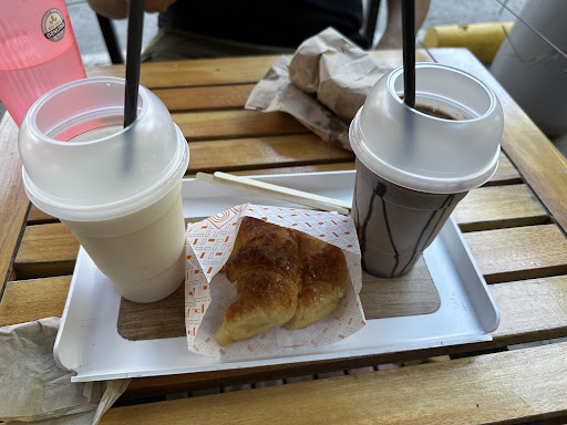 Read moreEl café es decente (Kersen, por caso, es muy superior) y las medialunas son muy ricas y te las dan calentitas. Tiene algo muy malo y ojalá lo corrijan: para obtener un producto hay que hacer tres colas (si lo tomás ahí) o cuatro colas (si es para llevar). El sistema es confuso, molesto, lento y todos están todo el tiempo preguntando a dónde tienen que ir para continuar la compra (se pide en una caja; se paga en otra; te dan el café en otra y te dan las facturas en otra). No hay espacio físico en el local para hacer funcionar bien ese sistema; tampoco hay señalización adecuada y los empleados se la pasan dando indicaciones sobre dónde ir para hacer una u otra cosa). El lugar es lindo aunque en días concurridos varias mesas de adentro no se pueden usar porque tenés personas paradas que incomodan (me refiero a las que hacen alguna de las 35 colas que hay que hacer para...