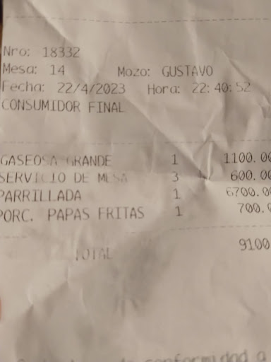 Read morePrimera vez que voy y fue muy triste la experiencia, me lo habían recomendado porque no soy de mar del plata y había elegido no dejar el comentario aqui sino a ellos, pero como la sra que cobra, lejos de tomarlo bien se molesto con mi comentario, entonces dejo la experiencia aquí. Queríamos comer una parrillada para 2 pero llegamos a las 13,45 y no tenían completo este plato, entonces nos recomendaron otro, mi marido había visto la carta más tiempo de lo que yo pude verla, no vi que tenían porción y media porción(el mozo no nos consulta cual queriamos) tampoco que eran porciones de carne sin guarnición, quise dejarles el comentario de que como eramos nuevos no vimos eso y quizas podrían asesorarnos en esto pero ella nos dijo que estaba todo en la carta, que llevan 20años así, por lo que entendí que entonces el lugar era solo para lo q conocían toda la carta no los nuevos, dijo que yo estaba acostumbrada a comer en lugares que viniera con guarnición,me pareció de mal gusto pero además de esto llamo al mozo para culparlo en frente del resto del personal cuando yo hubiera elegido hacerlo en privado para futuros casos, lamento q tenga una compañera/jefa así, la culpa no es de él chico q nis atendió, se acercó un sr muy amablemente para ofrecernos una segunda visita con algún descuento, le agradeci pero no creo q vuelva porque lo q me dejo en claro la sra es que no soy cliente que ella quiere tener, porque yo solo quería dejarle un comentario para q eso mejore no para recibir enojo de su parte, me gusta ir a lugares nuevos y vivir lindas experiencias porque no soy influencia jeje sino una...