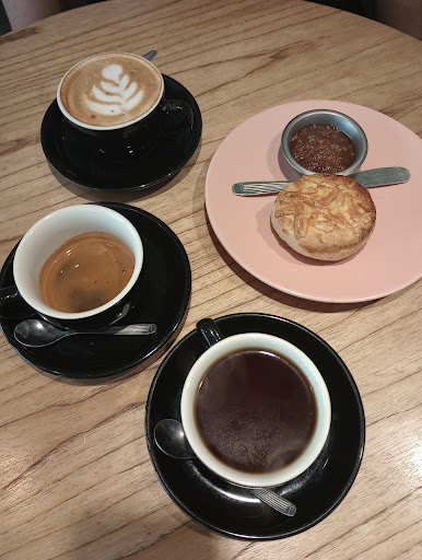Read moreEn una caminata rápida, ya que moría de ganas de probar un rico cafecito me encontré con está linda cafetería. Es sencilla y cómoda, el ambiente es muy cálido y luminoso. Cómo estábamos con poco tiempo nos pedimos un doppio, un capuchino y un scon de queso que venía con una rica mermelada de manzana y canela. Estaba con dudas pero al probar me voló la cabeza, muy rico. Cómo estábamos de suerte ese día los filtrados ese día estaban en promoción a mitad de precio y por supuesto lo pedimos, un rico cafecito de Perú y tostado por Puerto Blest, preparado en una V60. Nos fuimos contentos y el lugar cumple muy bien. Me declaro fanático de esta combinación de scon de queso con mermelada de...