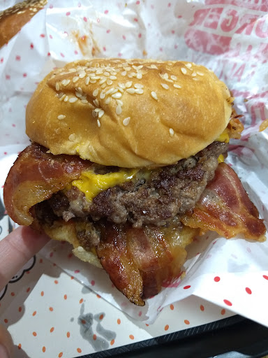 Fuimos por las reviews que habíamos leído en Google de que el lugar era muy bueno. Primero que nada, es muy económico, tienen combos bastantes baratos, eso está bueno. La atención es muy buena, nos atendieron súper bien. Las hamburguesas, en nuestra opinión, no son las mejores, el queso cheddar no nos gustó mucho. Somos de CABA y de probar muchísimas hamburguesas en muchos lugares y quizás somos algo exigentes, pero lamentablemente no volveremos. Son hamburguesas enormes, eso sí. Quizás a alguien le encanten, no fue nuestro caso. No tenían en sí nada malo, cumplían, simplemente los ingredientes no nos gustaron. Las papas están bien. Un punto igual a mejorar es el lugar; no es muy lindo. La iluminación y la decoración de las paredes podría ser menos blanca, artificial y más acogedora. Además, había un olor extraño en el piso de arriba, mezcla entre algún producto de limpieza y trapo húmedo. No es un lugar malo, todo lo contrario; pero no...