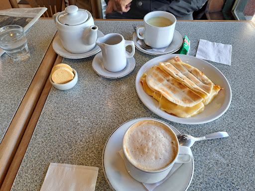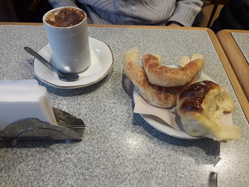 Read moreVengo desde siempre por los mozos y la canela . Actualmente deja muxho que desear la calidad de los productos .Comprendo que el queso es caro pero recibir un tostado con queso como goma no amerita el valor salvo que querramos tener un intestino de goma de bicicleta .El dueño es un personaje desagradable,burlón que goza dsndote el cafe con agua hirviendo .Dejas la boca...