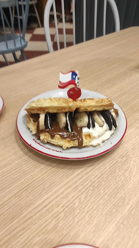Fuimos al de Unicenter anoche. Jamás soy de escribir malas reseñas pero la verdad que la comida dejó MUCHISIMO que desear (pedimos bacon cheeseburger y sándwich de pollo frito-que era más finito que un papel), los gustos no estaban mal pero las porciones era miniaturas, y las papas se pagan aparte. Lo único rescatable fue la ensalada de caesar con pollo que fue abundante y grande. Los milkshakes eran más espuma que bebida. El apple crumble tenía gusto como si hubiera estado meses en la heladera. La moza con mala cara todo el tiempo, como si nos estuviera haciendo un favor. No nos quejamos de nada, lo único que le pedimos fue si podía limpiar la mesa cuando nos sentamos porque estaba toda pegajosa... y sólo limpió adelante mío, no la mesa entera. 3 veces le tuvimos que pedir cosas a la gerenta (que levanten los platos, el postre, la cuenta, etc) porque la moza pasaba al lado de nuestra mesa sin mirar (e ignoraba a sus otras mesas por igual). Estuvimos 20 min DE RELOJ con los platos sucios esperando que se los lleve, por eso se lo pedimos a la gerente. Los que armaban los postres agarraban las frutillas con las manos (no lavadas) porque están a plena vista, luego de abrir y cerrar heladeras, agarras potes de cosas etc. Ni una pinza a la vista. Obvio que igual algo de propina le dejamos porque por lo menos está intentando laburar, pero con un poco de onda, hubiera sido mucho más. El lugar es muy caro para las porciones chicas y el mal servicio que brinda. Una pena porque la estética del lugar es linda. Igual no se lo recomiendo a nadie. Aunque con Club LN tuvimos un 20% de descuento, eso ayudó a no tener tanta bronca...