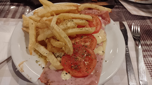 Read moreReserva previa y tienen que ser puntuales, los 5 minutos de tolerancia que piden, los cumplen y te borran la reserva, lo vimos. Esto tiene sentido porque el lugar se llena y necesitan mesas libres. Comimos por $55.000. No cobran servicio de mesa. Te reciben con una entrada, en el caso nuestro, fueron aceitunas negras, guiso de lentejas(frío) y tomates cherry saltados con ajo(todo rico); aplauso aparte para el pan y la dos chipas que vienen también en la panera. Matambre a la pizza con papas fritas. Una gaseosa light de litro y una porción de cheesecake. La atención y el lugar están más que bien, super amables en el servicio y los platos salen rápido. La mesa en la que nos ubicamos tenía vista a la cocina y es enorme. En cuanto a los platos: la porción está bien, pero creo que es la más chica de la carta, todos los platos que vimos pasar eran imposibles de terminar para una persona, eran para compartir; pienso que todo debería tener el mismo tamaño porque en cuanto a rangos de precios, son similares. Lo mismo sucedió con la porción de cheesecake, en comparación con las porciones que veías pasar, era evidentemente más chica. Por último, la comida vino tibia, a mí me gusta a esa temperatura pero cuando mandamos a calentar el otro plato, lo trajeron muy rápido y sacado del infierno. Volvería, pero a probar...