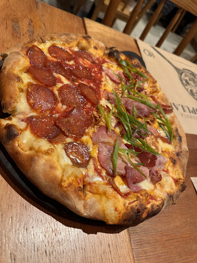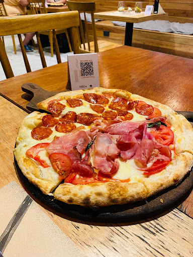 Read moreUn lugar con masa de pizza perfecta, muy generosos en el queso sin embargo la salsa no tiene presencia ni personalidad, se puede decir que es una pizza incompleta en ese sentido, quienes son amantes de la verdadera pizza sabran de lo que hablo. No se tome a mal pues el ambiente es muy agradable y cómodo, acogedor y bonito, es una pizza agradable pero con matices. Por otra parte el servicio es normal y en mi caso me sirvieron una jarra de limonada con cero dulce, nada. El problema de este tipo de sitios (y es común en Mendoza por lo que pide ver) que las pizza no puedes pedirlas con los ingredientes de tu preferencia o armar tu propia pizza, solo las que está y como esta en el menú, p. Ej. quisimos una pizza con maíz, tocino y cebolla pero fue imposible. Debimos pedir una pizza de sabores por mitad quitando algo a una del menú y agregando ingredientes adicionales al otro lado, lo que es algo sin sentido porque a fin de cuentas si es posible hacer una pizza similar pero como ellos elijan y no como tú lo prefieres. Si es una pizza gourmet por la calidad de ingredientes pero el problema de la elección sumado a una falla tan grave como la salsa hacen que tú experiencia no sea gourmet (aunque es lo que cobran). Si aprecias realmente una pizza con buen cornicione, pues estás en el lugar, ahora sí buscas la experiencia total en la pizza, no sera el indicado. Las 3 estrellas son por la buena masa, cantidad y calidad de los ingredientes y...