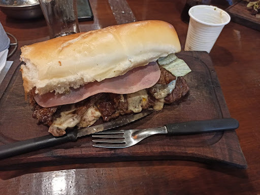 Read moreFuimos con mucha expectativa por la publicidad que tiene y la verdad no nos fue del todo bien. Llegamos y nos atendieron muy bien y rápido. Pedimos para tomar y no estaba muy fría la bebida. Luego elegimos la famosa hamburguesa de costilla y luego de 20 min de haberla pedido nos avisaron que solo te la pueden vender si llamaste antes de ir al lugar y avisaste que ibas a comer eso. Lo malo fue que llamamos para reservar la mesa y no nos informaron que también hay que reservar esa comida. Terminamos pidiendo un lomo que en teoría viene con 1kg de lomo, lo cual no paso, y además tenía una mezcla de bifes blanditos y ricos y otros que no se podían cortar. La lechuga y la cebolla caramelizada brillaron por su ausencia. El pan se ve que lo calientan en la parrilla, que me parece una idea genial, pero el nuestro se les paso la mano y el pan estaba seco como si estuviera viejo. En fin la verdad es que voy a volver porque estoy seguro que fue una mala coincidencia porque todo el mundo que va dice...
