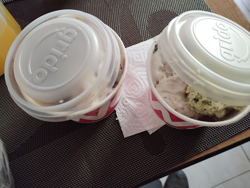 Ayer, domingo fuimos a comprar 2 kg de helado. Tienen dos tipos de precios: de sabores clásicos más barato y los especiales de más valor. Nosotros compramos del más caro. Luego de pagar pasamos al sector de entrega: era terrible la cantidad de moscas y mosquitas chiquitas sobre las tapas de las heladeras tanto cerradas como las abiertas.... Volaban por alrededor de los empleados y se asentaban en todos lados... Impresionante. Le dije a uno de los chicos que atienden y me dijo que no era para tanto. .... Parece que están acostumbrados a esa falta de higiene. Además, hay que agregar la cara de pocas ganas de atender de la chica que nos atendió el pedido!!!! Por no poner en otras palabras la expresión de esta empleada. Lamentable la atención, la falta de ganas de atender adecuadamente y sobre todo la falta terrible de higiene. Y para agregar, al terminar me entregó el helado en potes de 1/2 kg, que solo los tapó con el plástico sin colocarle cinta para que no se abra.... Se iba volcando el helado en la bolsa porque se abrían los postes. Ni pensar en los toping, que en otros Grido te dan 4 por kg en este tipo de compra de kilo especial.... Aquí me dijo que se pagan aparte. En ningún otro me sucedió esto.... En resumen, dejé en el libro de quejas la situación de la falta de higiene Terrible experiencia en...