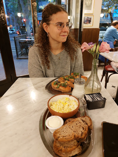 El café más antiguo de Mendoza hace justicia a su antigüedad y se entiende perfectamente porque ha resistido al paso de los años. Una media tarde espectacular servida de manera generosa y sin grandes variaciones entre lo que cuesta y lo que es(es más de lo que cuesta). La promoción andalucia viene con CUATRO tostadas con salsa de tomate casera y un toque verde que no pude identificar qué era pero casaba perfecto con los otros sabores, acompañada con capuchino con un toque de canela que da todo un gusto especial. El otro pedido era un combo con huevo revuelto, tostadas y queso crema nada mágico pero tampoco deja a desear. La decoración del local te hace sentir en un café porteño de esos antiguos, hay un olor constante a café recién sacado que deja todo el ambiente más mágico y también ese murmullo de café lleno que puede molestar a algunos pero me transmite más la sensación de estar en un café de especialidad. Para la próxima probaremos el sanduíche de jamón crudo con vermut. Una carta muy española y variada con...