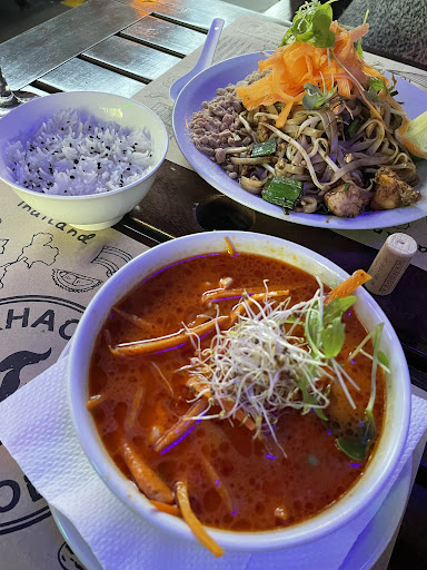 Read moreIt’s pretty cool place, they designed it to be like your inside a street in Bangkok. The food tho isn’t not great ordered beef was cut into very small chunks and was very chewy, I’m pretty sure they use bought pre-made sauce because it does not taste fresh or homemade. The portion size was good but the rice wasn’t flavoured or cooked well either. The garnish of slice cabbage was dry and not freshly cut either, and the cashews has burn or mould on not sure what it was