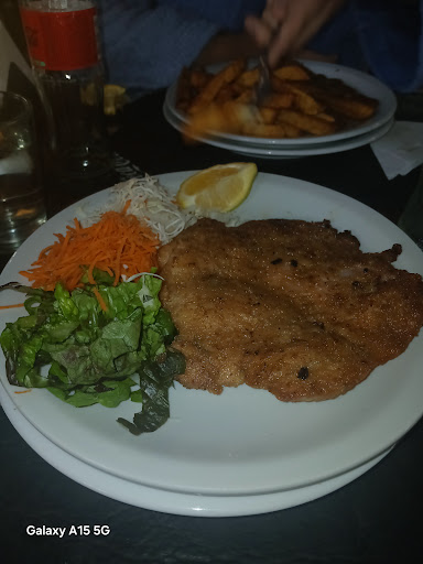 Read moreMe pareció un fiasco, la comida se nota a la legua que es eternamente recalentada, pedí matambre a la pizza y era como comer mondongo rancio, parece algo hervido, duro y chicloso, lo más parecido al bubalú de la infancia después de hacer mil globos, las papas si bien tienen buen tamaño se le siente el olor a aceite rancio, con mi hermano coincidimos que si lo hubiéramos freido esas papá con Elaion 15w40 de YPF nos hubiera hecho mejor ya que tuvimos que rajar al baño a desagotar toda esa basofia, cuando entramos al baño nos encontramos con otra y más mierda de lo que refleja el local, queda afuera y más cagado q palo de gallinero. Se nota que a varios les hace mal comer ahí... Además tuvimos que aguantar musicalmente a un prototipo fallado y nicotinamente contaminado de Gilda y emulando a Soledad Pastotuti en sus mejores epocas, cosa que nos taladro el cerebro durante la eterna espera. La parrillada, no me chamuyen! Además de ser re poco para el precio q piden, también tiene cosas recalentadas, la morcilla parecía un cartón y las costillas eran puro hueso y grasa. Lo lamento por la mosa q nos atendió q fue atenta y demostraba voluntad, pero no, no da poner la jeta por un fiasco.