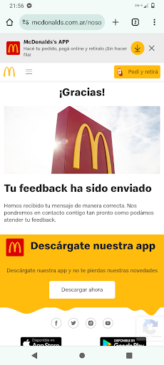 Read moreRealizamos un pedido por la aplicación de Mc donnalds de 5 combos de hamburguesa, papas y gaseosa. Llegó todo excepto una hamburguesa (Grand Tasty), realizamos el reclamo por la aplicación y la única solución que quisieron darnos fue un reembolso de $6000 a acreditar en 38 horas. Cabe aclarar que la hamburguesa sola, sin comprar en combo, sale $10500, o sea que con el reembolso no logro cubrir el costo de la hamburguesa. Llamé más de 15 veces al local y no contestan el teléfono, en definitiva, somos 5 personas que no han podido comer en las condiciones que deberíamos ya que obviamente esperábamos el pedido que faltó. Definitivamente voy a acercarme a defensa del consumidor a realizar el reclamo correspondiente. No sólo fue la falta de que no llegara la hamburguesa, sino la mala solución ofreciendo un reembolso que no cubre el costo de la hamburguesa y la imposibilidad de comunicarme con algún supervisor del local. En teoría uno elige la empresa porque parece ser seria, pero no dudaría en seleccionar a la competencia la...