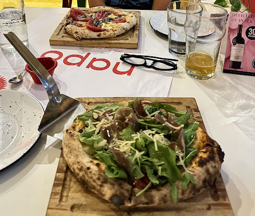 Perfectly baked, perfect toppings, perfect portion sizes. The menu is lean and not too extensive, the beer and wine is good, and the olive oil is sensational. The choose between 4 slice and 8 slice is really clear and good for individual portions and sharing. Ulises was a brilliant waiter but also the rest of the staff were great and hospitable too, no language barrier.