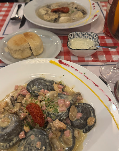 Read moreAl leer su nombre Napoli e identificarse como trattoria uno se espera comida sin menu, pero al contratario soprende en su primera impresión con una carta forrada con una cubierta con la textura alfombrada. La ambientación es rústica casual, la iluminación no está orientada a la ambientación y tiene una mala disposición. En cuanto a las mesas poseen asi como las sillas una altura adecuada que permite aproximarse al plato sin flexionar la espalda por lo que no comprime el estómago permitiendo una postura relajada y leve. En cuanto a la calidad de la cocina, las pastas están muy bien, las porciones son abundantes, tienen una variedad interesante pero no abundante, no hay clásicos como fusilli al fierrito o malfatis. Sin embargo los sabores son de una muy buena calidad, si no es una exclusividad de sabores puesto que las salsas tienen una condimentación media, no hay un uso explosivo de recursos como laurel, albahaca, o quesos como pecorino romano o taleggio o reggianito. Pero en general esta muy bien aunque para su nombre y colores deberia subir mas su calidad, una recomendación enfatica seria que mejoren el sabor de las salsas, ponga musica italianpara ambientar, y cambien el tipo de platos ya que los ofrecidos no son los correspondientes para pastas. La atención es impecable, absolutamente amable el personal y muy pendiente de las necesidades del comensal, el servicio de mesa en general...