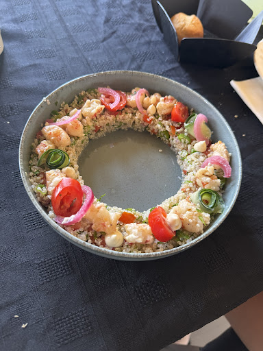 Read moreEl lugar está adentro de un country, la entrada es gratuita. El restaurante da a la cancha de golf y al aeropuerto de San Rafael, la vista es muy linda. Nos recibieron con unos pancitos, una lactonesa de aceitunas negras y unas verduritas al escabeche, muy ricas. Casi todos los platos tienen un opción individual o para compartir. De entrada pedimos unos langostinos con quinoa individual, de plato principal pedimos uno ojo de bife, con una salsa de hongos y una ensalada de falafel, para tomar pedimos una gaseosa y una jarra de limonada, por último de postre compartimos unos panqueques. Todo es súper rico, se nota que los platos son bien elaborados y la atención es súper agradable. El precio me...