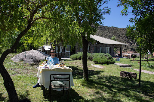 Very cozy place, roots as we call it in Brazil. The staff is incredibly friendly and service is very quick. We had lunch twice there and one was inside and the other one outside, under a tree, which was fantastic. We had fish, beef and salads, before that they serve hot baked bread and empandas as soon as you sit down. They had several wines but only 2 Reserve choices, which was not a problem. The dogs make a magic experience with their huge fur and goofy attitude. This was also the only option to eat that was open Saturday and without a reservation in that area. Before luch we went to hike at Manzano Historico, a great option to have an activity and after that a good...