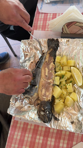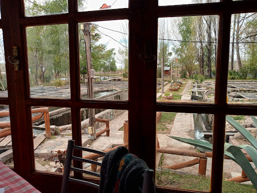 Criadero de truchas, hay que reservar, sirven un único menú de tres pasos, exquisito, se inicia con una picada que trae: empanada de trucha, paté con trucha ahumada, mousse de trucha, pantomate y pan casero, sin desperdicio. El plato principal, trucha a la manteca con papas natural, sin palabras, nos enseñó a abrirla y despinarla, muy interesante y por último ofrecen postre a elección. Se puede recorrer el criadero. Lugar acogedor, atención excelente. Súper recomendable. Reservé...