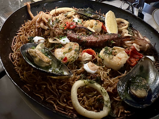 Read moreWe had high expectations with all the hype, but the experience was underwhelming. The restaurant is beautiful, with a great vibe. The cocktails and bartender are top-notch, as is their wine list. For the main course, we tried their version of paella and the ribeye steak. The paella was overcooked; the baby squid was so dry it was almost impossible to eat. However, the type of pasta they used instead of rice benefited from the extra cooking, becoming tasty and crispy, though the seafood on top did not fare as well. The steak was cooked perfectly but lacked seasoning and was barely warm. It arrived warm, but within minutes, it had gone cold. By 11 p.m., the restroom looked like it hadn’t been refreshed since the restaurant opened—not what you’d expect from an establishment of...