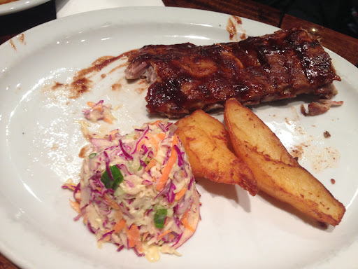 Read moreNo acostumbro a poner mala calificación, pero me gustaría que el local vea esto y aprenda de su error. He ido a comer varias veces al lugar y la verdad que ha estado decente, no le llega ni a los tobillos a otros restaurantes similares de ribs que he ido en chile u otros lugares, pero está bien. El problema está en el delivery que me mandaron hoy, uno en el local se puede defender y si le traen cualquier cosa se llama al mozo y se hace el cambio. Pero en delivery aprovechan a mandarte cualquier cosa y uno no puede hacer nada. Papas crudas, costillas de mala calidad dónde hay más grasa que carne, y tapando con barbacoa los defectos. Pero la cereza del postre, una ensalada coleslaw que no tiene nada de coleslaw... Literalmente me mandaron en un recipiente, repollo, zanahoria y cebolla de verdeo crudas, cortados muy groseramente y hasta parecía que no lo habían lavado, sin nada agregado, y aparte te ponían un pequeñito recipiente con el aderezo de coleslaw, que era muy poco para lo que había de ensalada... El resultado, una ensalada nefasta y sin preparar que acompañaba unas papas crudas y grasa con hueso. Que mala...