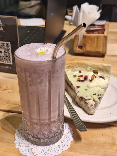 I chose this café because they offer almond milk, which is quite hard to find in Argentina. My boyfriend got a great deal for 5,500 pesos, including an infusion, juice, and tortitas, but for me, there weren’t many affordable options. The only vegan breakfast was around 12,000 pesos, or I had to order everything separately. Almond milk had an extra charge of 1,000 pesos, which felt excessive, especially since the taste wasn’t great—I’ve been drinking it for years, and this one wasn’t the best. The only reasonably priced sweet options were a chocolate and peanut cookie (around 2,500-2,700 pesos) or a pudding for 4,500 pesos. Overall, I expected more variety at better prices, and the coffee wasn’t...