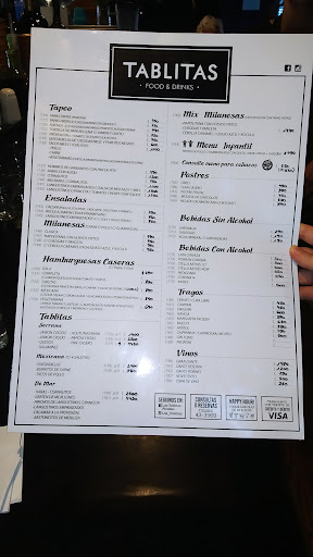 Read moreFui a comer con mi familia, pensando que por el nombre venderian “Tablitas de fiembres”, cosa que no habia. Pedimos otra cosa, los platos abundantes. La atención buena, tiempo desde que pedis hasta que traen los platos es relativamente rapida. no puedo opinar de la ambientación ya que comimos afuera. Los precios bastante altos, debe ser por la ubicación en la peatonal. El WIFI es nulo prácticamente a la hora de necesitarlo para pagar en caso de quedarse sin señal por la cantidad de gente en la zona. No toman pagos con tarjetas de credito. Únicamente Efectivo, Debito y...