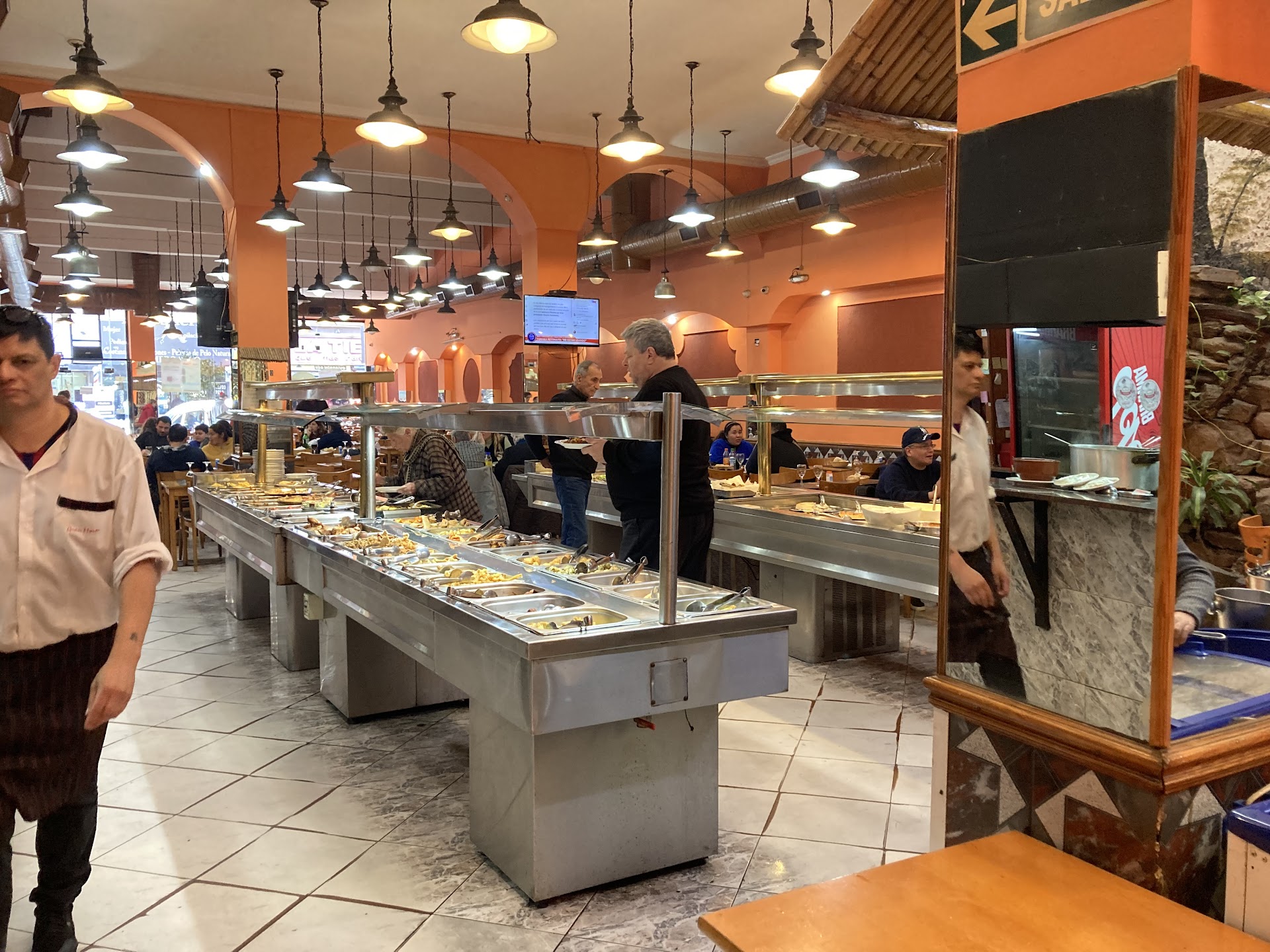 Read moreAnoche fuimos con mi marido. Sábado por la noche. $3400 por persona. Entre los dos gastamos $8600. La comida era literalmente un asco. Pedí vacío y me dió un pedacito parecía una feta d fiambre y crudo. Ni gusto a carne tenía. No había puré. El que pusieron luego estaba re aguachento. Papas fritas no había. Tardan mucho en bajar las bandejas y mantenerlas llenas. Casi todas las bandejas estaban vacías o con comidas que solo hacían bulto. Pedimos fideos con tuco y no había. Ñoquis no había. Solo había ravioles. Ensaladas de lechuga no había. Cuando nos servimos algo de lo que podíamos rescatar estaba helado. Pésimo servicio. Pésima atención. Un lugar que antes era muy bueno y ahora cambio por completo. No volveremos a ir. A los baños no fui. Pero es muy molesto los vendedores ambulantes que también pasan x las mesas cada diez minutos. En teoría pagamos $8600 y comimos un poco de puré, un pedacito de carne cruda, tres o cuatro rabas y dos langostinos. Mi marido comió un poco de fideos salteados. Rabas. Puré. Y el riñón que pidió me dijo que tenía un gusto asqueroso. El chinchu estaba crudo aún así q no se lo sirvieron. Y el vacío...