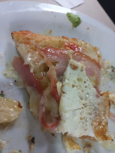 Consumimos 13 porciones: 3 de choclo, 2 de champiñones, 1 de anchoa, 1 de panceta, 1 de pollo al verdeo, 1 de salchicha, 1 de provolone, 1 de huevo duro, 1 de huevo frito y 1 de ananá. A excepción de la de panceta que no trajo más que una feta muy chica, y la de anchoa por la enorme cantidad de espinas, fueron unas pizzas excelentes. Depende del día, el grosor de la masa, el día de hoy era más fina que otras veces (cosa que me parece mejor para tener hambre y probar más sabores).