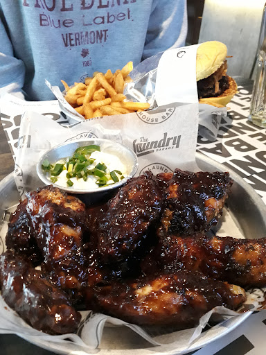 Read morePrimera vez que voy a The Laundry y, en general, quedé conforme. A destacar, me pareció riquísima la hamburguesa y también riquísimas las papas fritas de acompañamiento. La atención me pareció muy buena. A pesar de que había mucha gente, nos atendieron rápido y nos trajeron el pedido bastante rápido también. La limonada con menta y jengibre estaba exquisita. La ambientación también está buena y me gustó mucho la música que pasan. Lo que no me gustó fue que no hay pizzas en el menú. Solamente se pueden pedir entradas y hamburguesas así que si van con la idea de comer pizza, lamentablemente deben ir a otra sucursal de la cadena. El postre oreo me decepcionó un poco también porque en la carta decía que venía en una copa pero vino en un recipiente de plástico. Estaba rico de todas formas pero no me gustó tanto como la hamburguesa, las papas, y la limonada. En cuanto a precios diría que está muy bien. Una hamburguesa con queso con papas, limonada para dos y un postre nos costaron unos $2.000 por persona lo cual me pareció muy bien porque comimos bastante. En definitiva, me gustó mucho la comida pero me hubiera gustado más variedad para elegir sacando de lado las entradas que si...