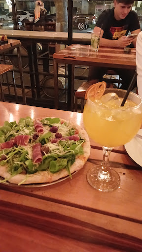 Las 3 estrellas son más que nada por la atención que deja mucho que desear y por la disposición de las mesas. Si vas al fondo (aire libre) están mejor distribuidas pero en el lateral es un bajón. Todas se tambalean, nos teníamos que levantar de la mesa para que la mesera pase a dejar las cosas para los clientes de al lado...malisimo. En fin, si van, vayan al fondo que esta más lindo o adentro. Tema comida. Fui en 2 oportunidades. No probé nada para picar pero tenia todo pinta y me coparon las porciones. Al menos las papas y nachos que veía pasar venían en bandejas repletas. Es algo bueno para tener en cuenta. Probé la hamburguesa y la ensalada cesar. La hamburguesa meh. Entiendo que no se especializan en eso peeero muy ratones con los toppings. Bastante pobre la hamburguesa en ese sentido. El medallon estaba rico. Las papas son una patada. A nosotros por lo menos nos vinieron con bocha de aceite. Tema ensalada, porción regular, quedas...satisfecho. No llena pero te satisface. Picaria algo antes para complementar. El ambiente es lindo, es más tirando a cheto pero en sí es lindo. Y tema atención, me paso en ambas oportunidades que venían meseros distintos todo el tiempo a pasarnos el pedido cuando ya lo habíamos hecho, nos traían la comida pero no la bebida y paso que a la mitad nos llegaba el pedido y el resto veía como comíamos hasta que llegaba lo suyo. Traían la pizza pero no cubiertos por ejemplo también, y esperamos 15 minutos para que los traigan. En otro momento, me paso que llame a la mesera para pedirle algo y la piba le revoleo los ojos a la compañera y vino...nada, son actitudes que a mi por lo menos me la baja. Fui 2 veces porque me copo el lugar y hasta ahora lo que comí me gustó, pero sostengo que la atención no está buena según...