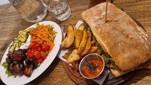 Read moreUna hermosa experiencia la verdad. Me quedaba un poco lejos de casa pero creanme, vale la pena. Desde que pones un pie dentro, ya se siente diferente. Sus comidas vegetarianas/veganas están en un repertorio bastante amplio para casi cualquier persona que se aventure a entrar. Por mi parte estuve cómodo, bastante acogido por la calidez del lugar y en buena compañía. Mi comida estuvo riquísima y las de mis acompañantes también según sus críticas, fueron llenadoras y exquisitas. Destaco el baño que ya tiene motivo inclusivo para que sea compartido por todos los géneros, básicamente como si fuese el baño de tu casa o mi casa.. entran todos nadie se pelea por eso. Igual siempre voy a tener mi pequeña lucha por algunos puntos que quedan sin cerrar sobre este tema, ya que si vamos a ser inclusivos, lo seamos con todo el mundo y con esto estamos dejando fuera a personas de esta misma sociedad que no piensan de esta forma. Pero bueno, caemos en la discusión y no vengo para eso, si no lo destacó como parte innovadora del local en cuestión. El baño, hablando de eso, impecable.. puntos a favor por eso. Y luego sobre lo lindo del local por dentro es digno de ver, hay pinturas en todas las paredes pero no en cuadros, literalmente en las paredes. Muy hermoso esos detalles artísticos me sumo a esas iniciativas. Hay también infusiones a la venta que no pude probar pero quizás la próxima vez que vaya tenga para llevarme un par de opciones. Gracias por la buena atención y...