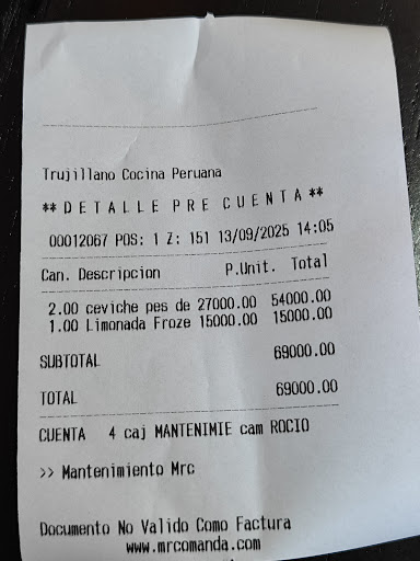 RICO PERO CARO Salimos de colocar un amoblamiento y por la temperatura elegimos ir a este lugar. El lugar es limpio y bien ambientado con buena atención del personal. No miramos la carta, pedimos sin mirar ceviche de pescado y una limonada. En las fotos está el ticket: $69.000- El ceviche estaba muy bien, pero convengamos que no era ningún pescado fuera de lo común (lomito de atún o pollo de mar). Destacaba las algas y las láminas de plátano frito. La limonada bien también. Desde mi punto de vista es caro. Está misma semana almorzamos: entrada con planificación propia, asado a la llama, papas fritas con huevo revuelto babe, dos copas de vino y postre, gasté $21.000 por persona en el corazón de villa belgrano. De paso les dejo unas fotos de los muebles de baño...